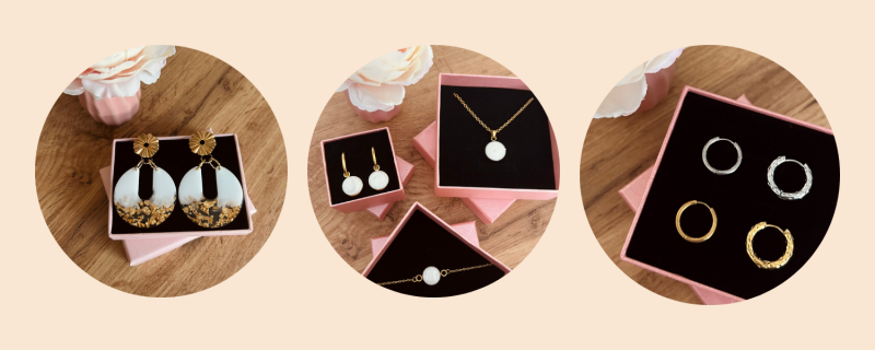 Retrouvez nos grandes boucles d’oreilles, colliers et bracelets artisanaux, ainsi que nos créoles.