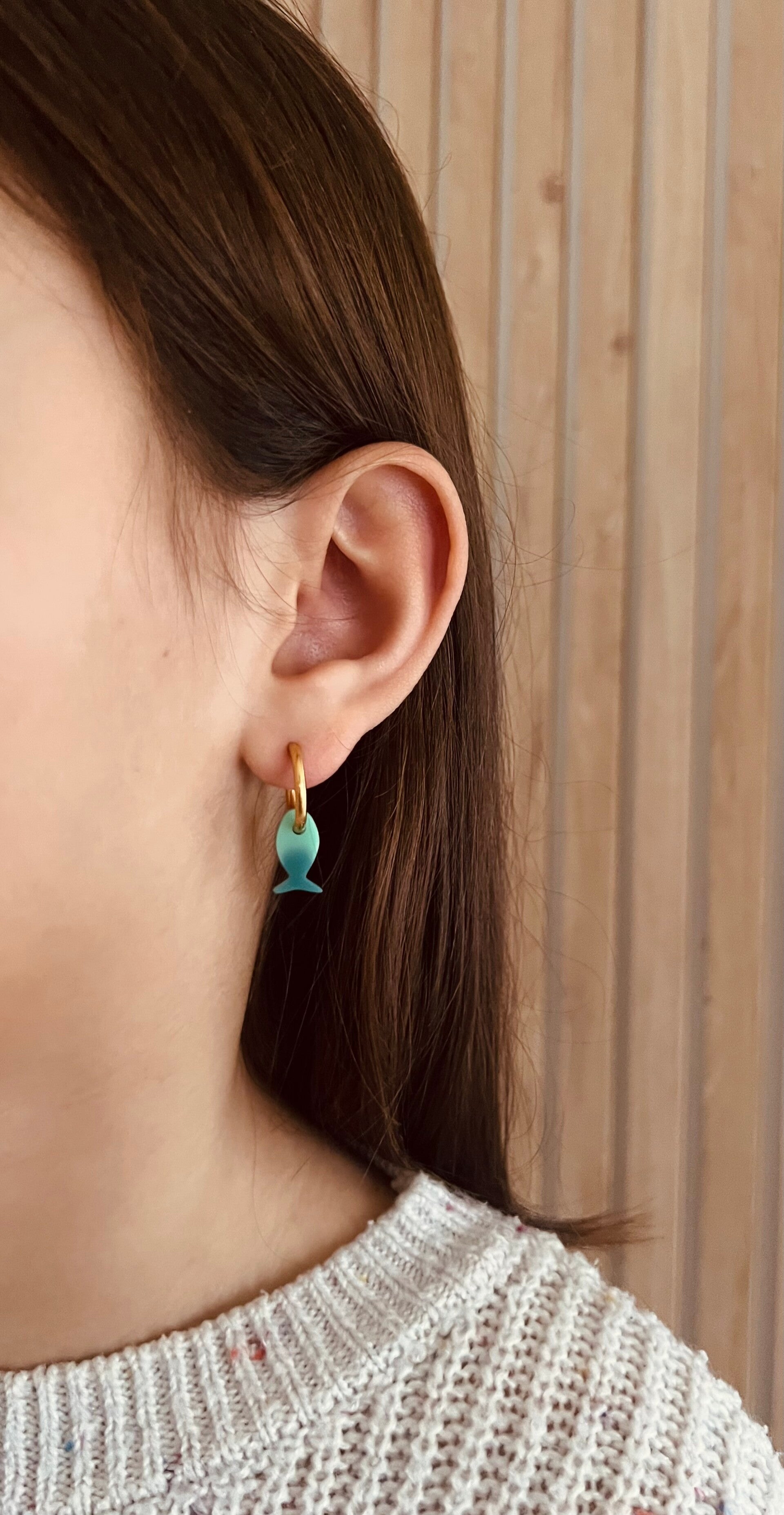 Bleu pailette / Avec créoles dorées - 25,00 €
