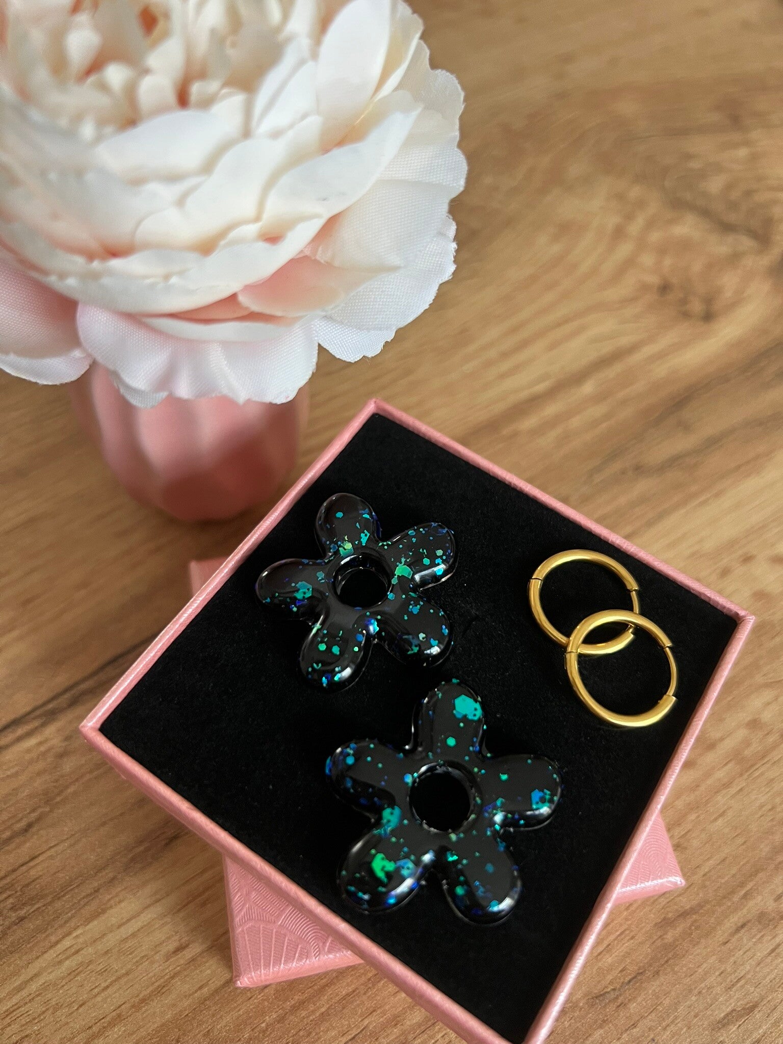 Chaque pièce est réalisée avec soin pour sublimer la délicatesse des fleurs et la transparence de la résine.