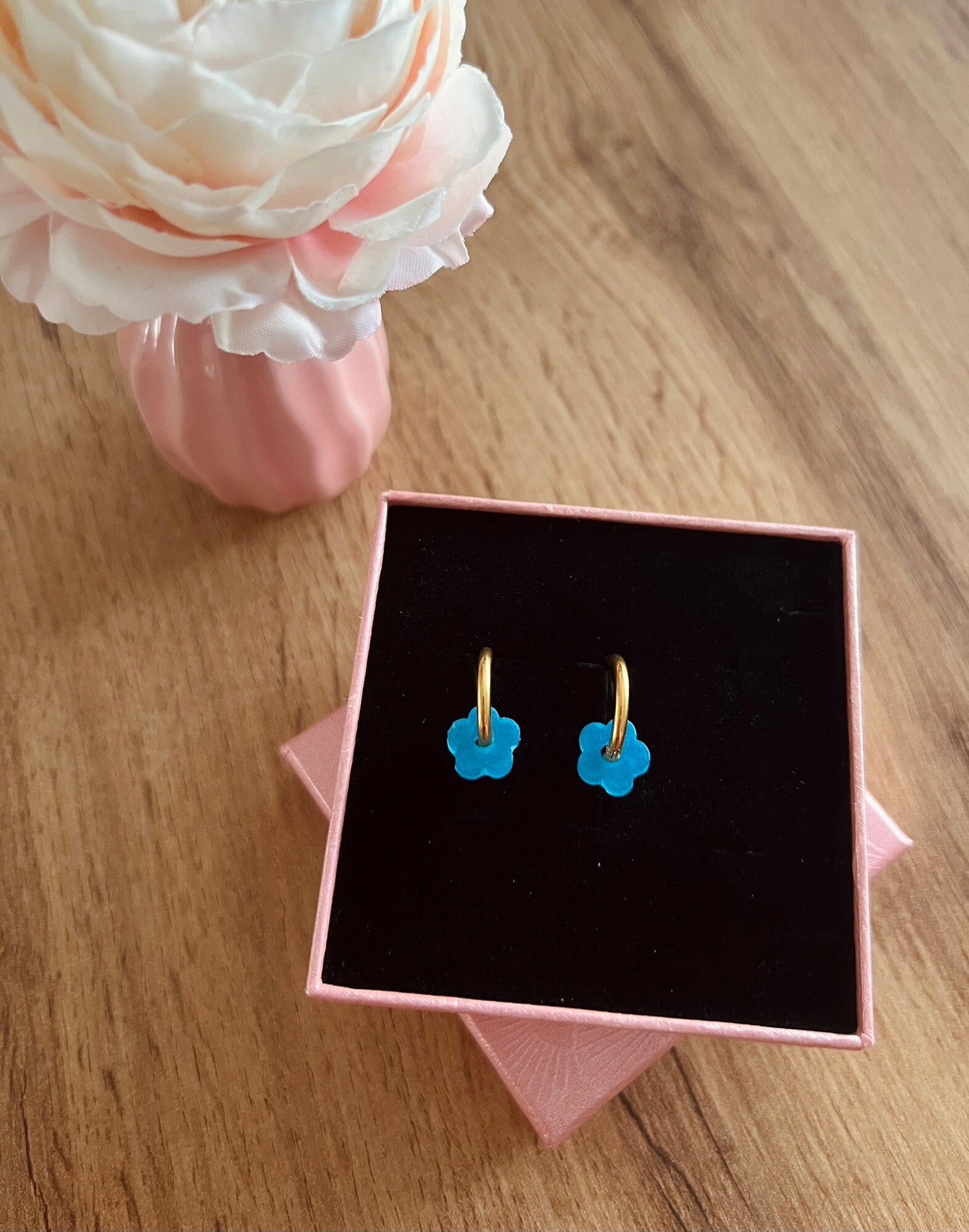 Cet article est fait main en résine époxy. Chaque pampilles est unique, ce qui rend chaque création spéciale. Les couleurs peuvent légèrement varier par rapport aux photos de présentation, en raison du caractère artisanal du produit.