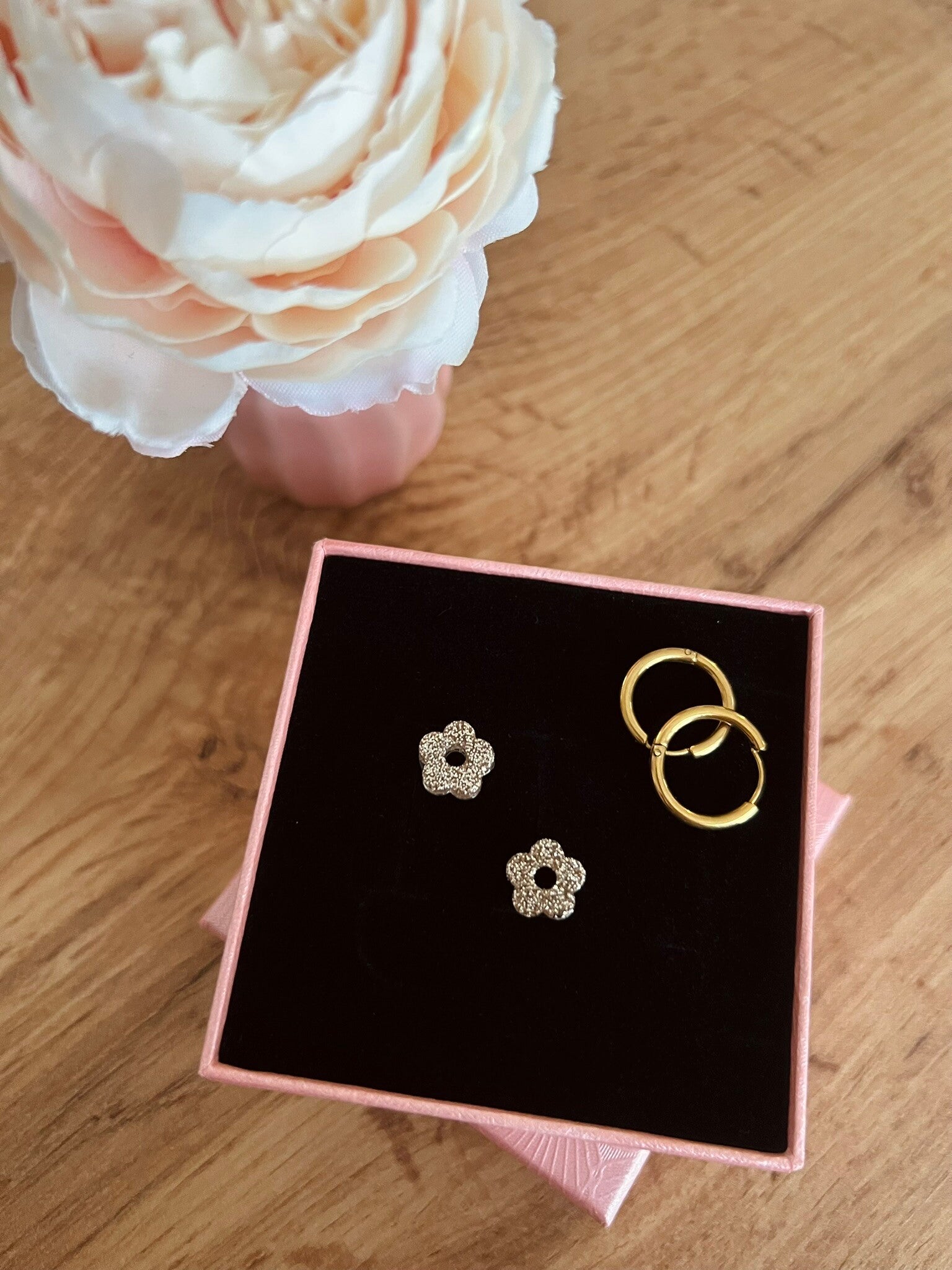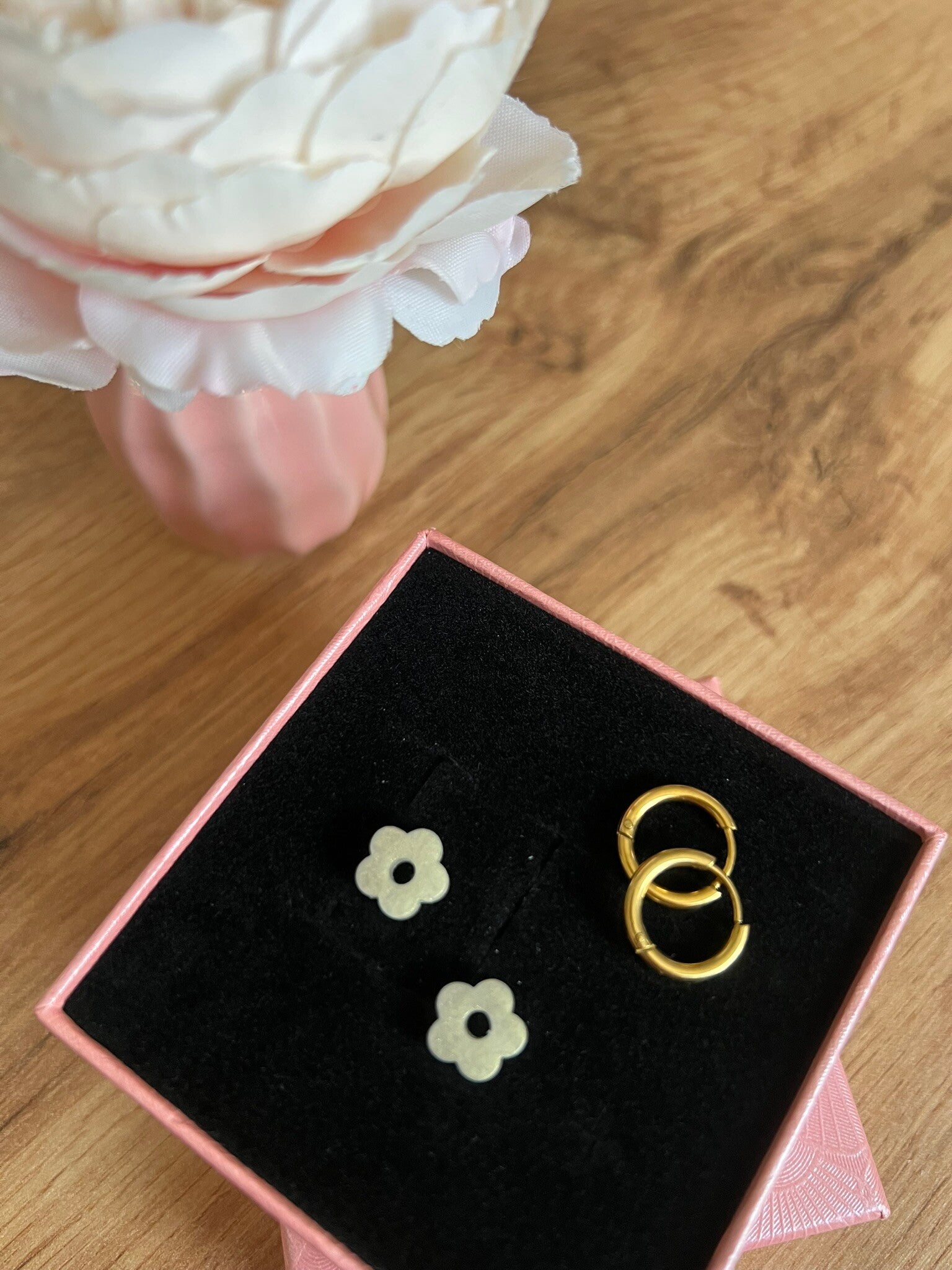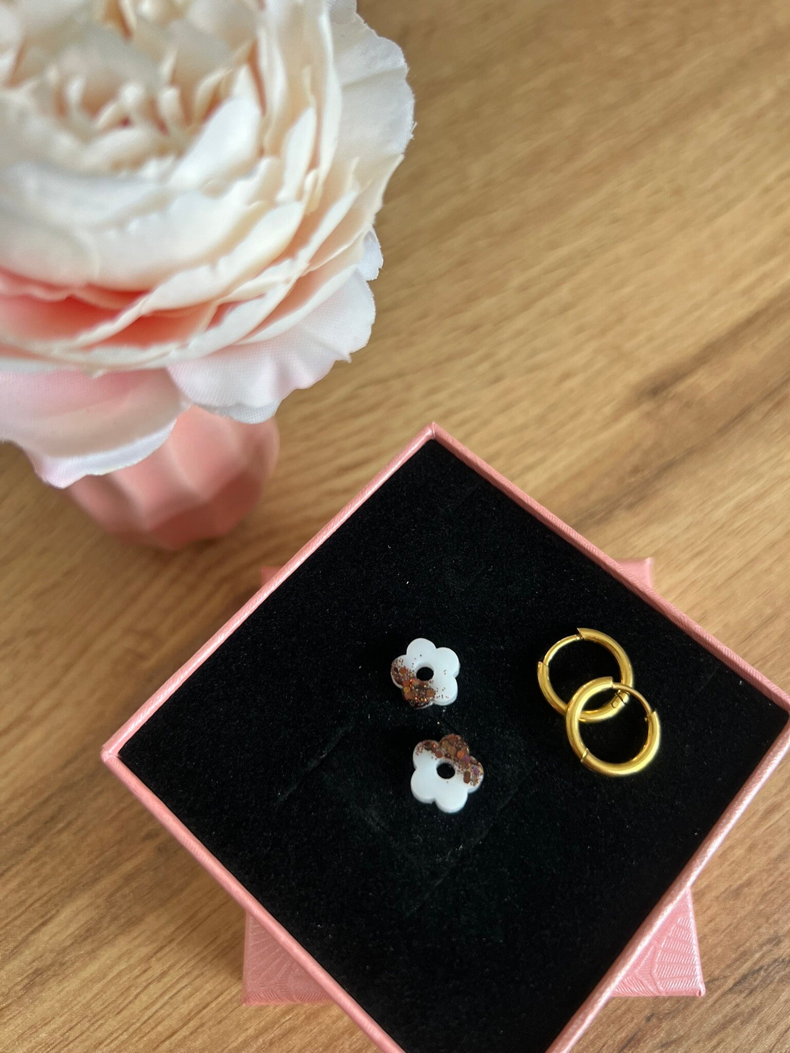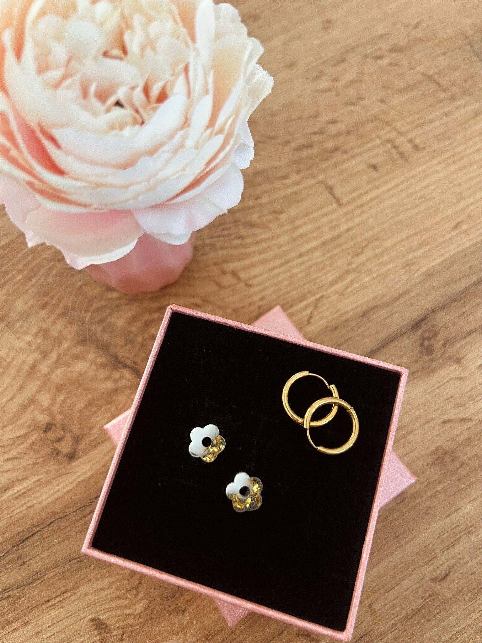 🌼 Vendu sans créoles. Des créoles de différentes tailles sont disponibles séparément sur la boutique, pour vous permettre de composer votre paire selon vos envies.