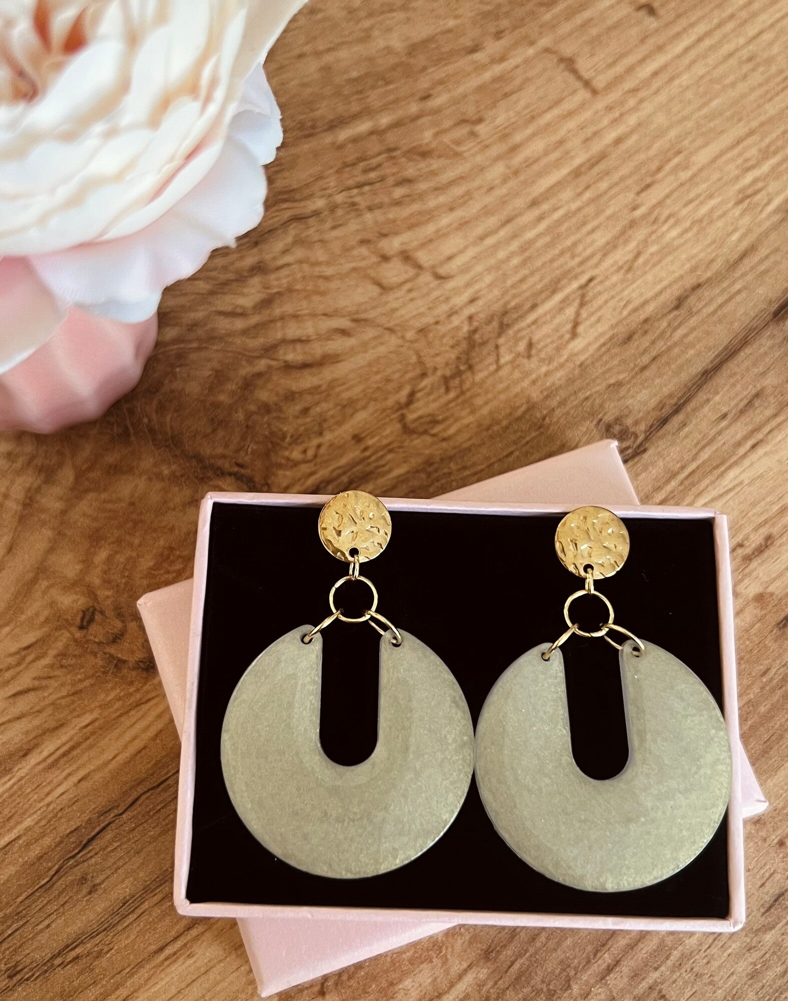 Faites main avec soin en résine époxy et acier inoxydable, chaque paire est unique.