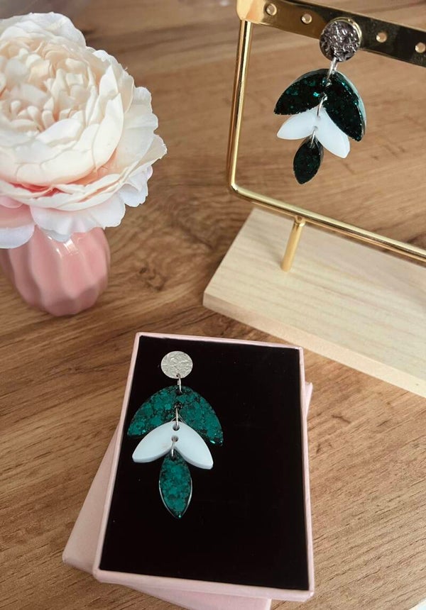 Faites main avec soin en résine époxy et acier inoxydable, chaque paire est unique.