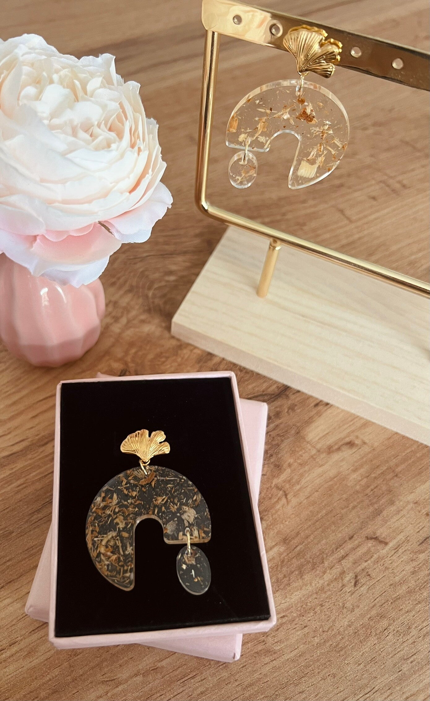 Faites main avec soin en résine époxy et acier inoxydable, chaque paire est unique.