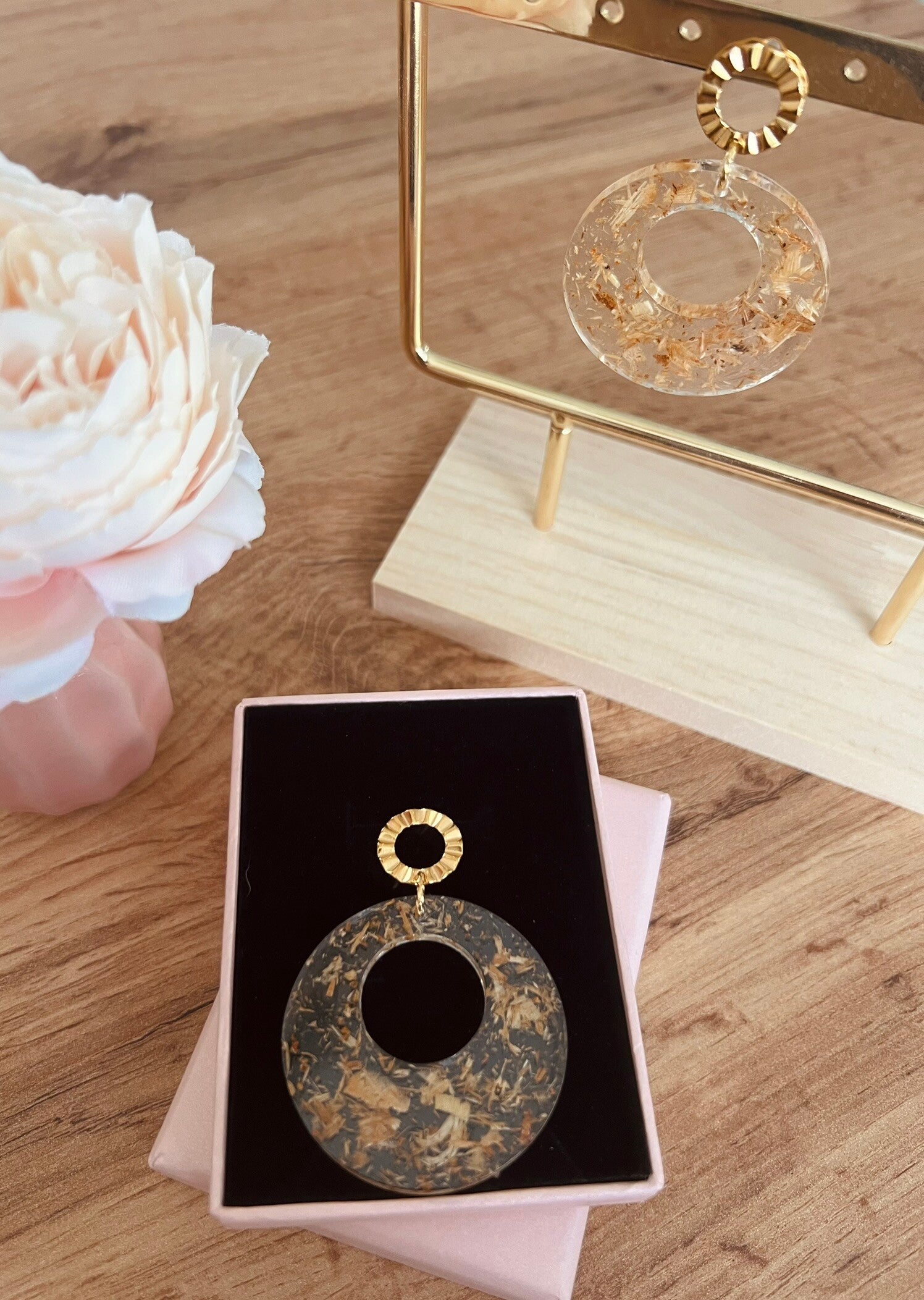 Faites main avec soin en résine époxy et acier inoxydable, chaque paire est unique.