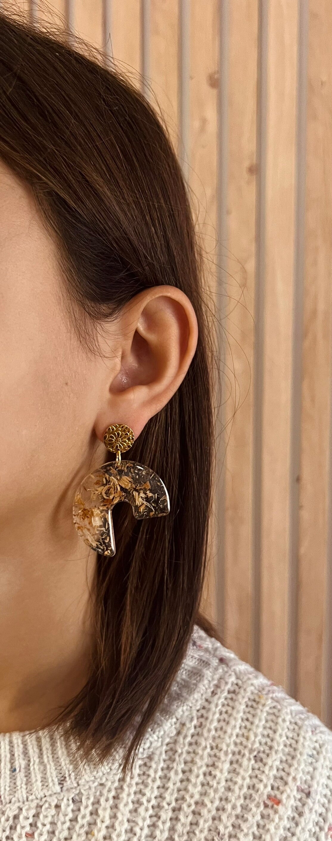 Faites main avec soin en résine époxy et acier inoxydable, chaque paire est unique.