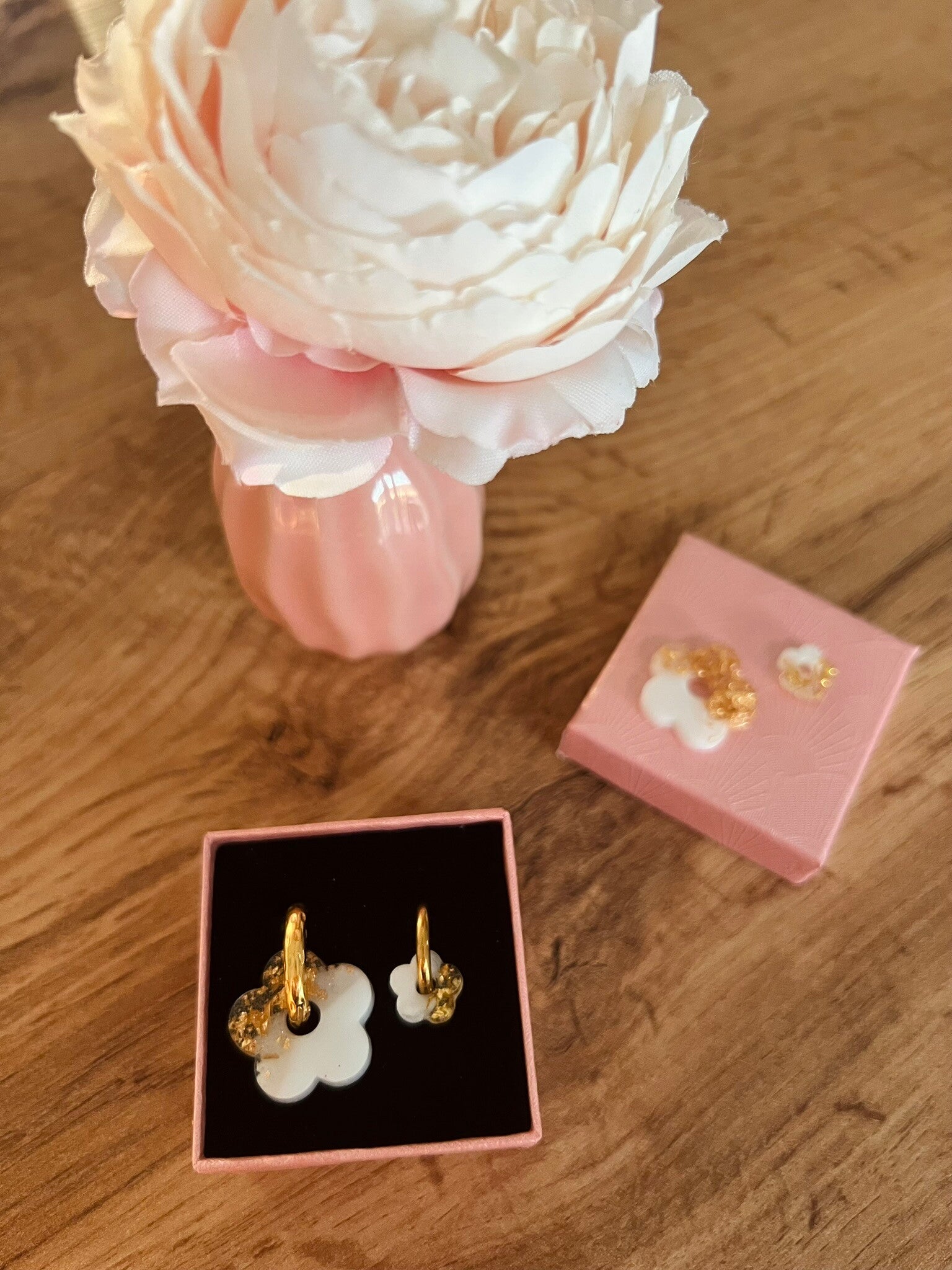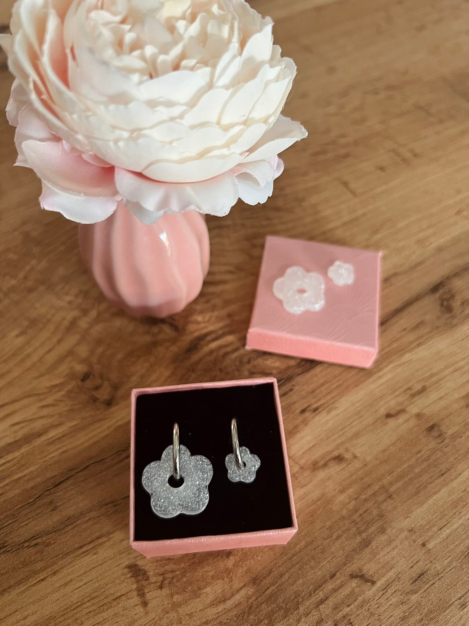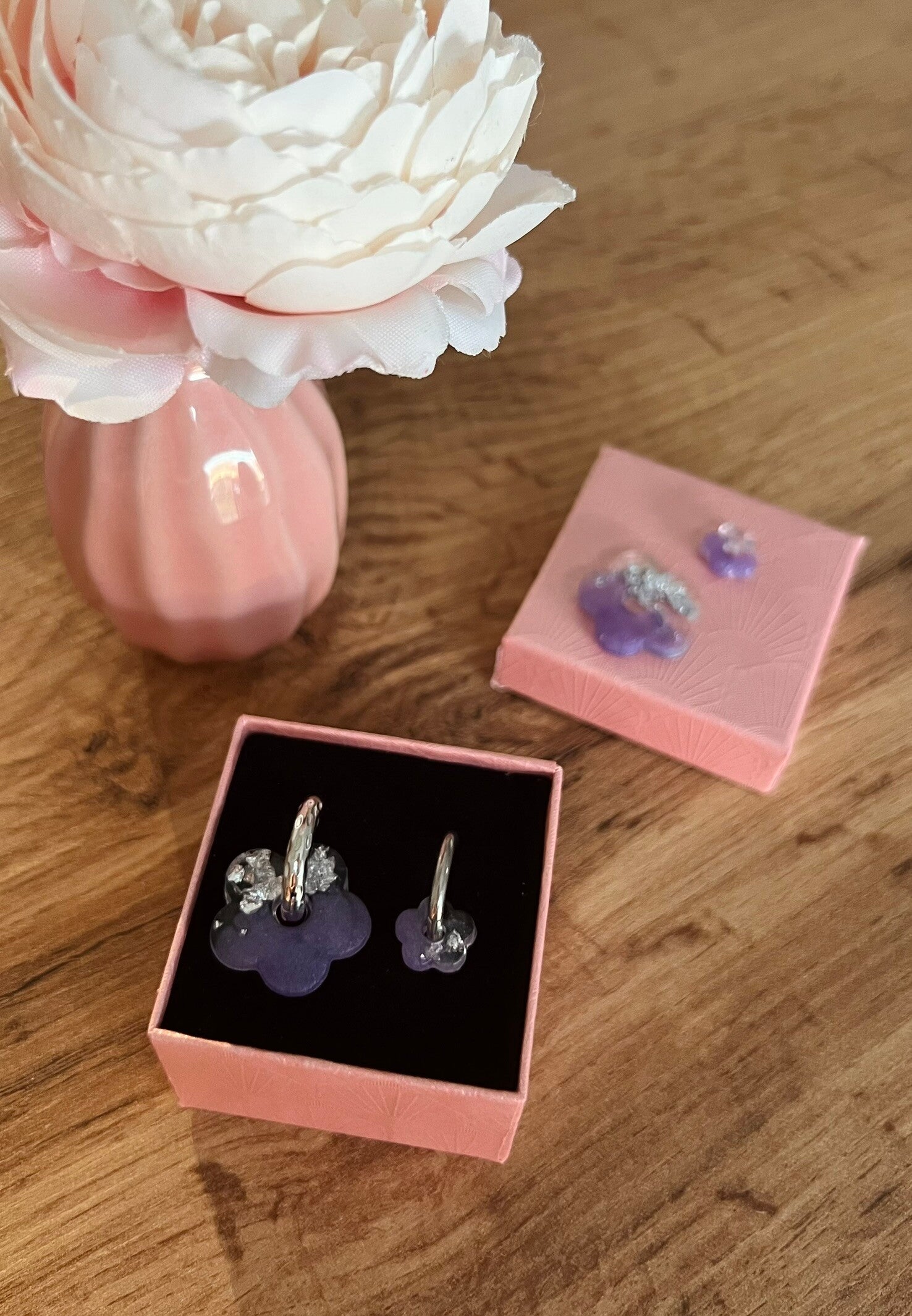 ✨ Composition : • Pampilles en résine époxy mère et fille ( grande et petite ) • Avec ou sans créoles ( créole simple 14mm et 20mm)