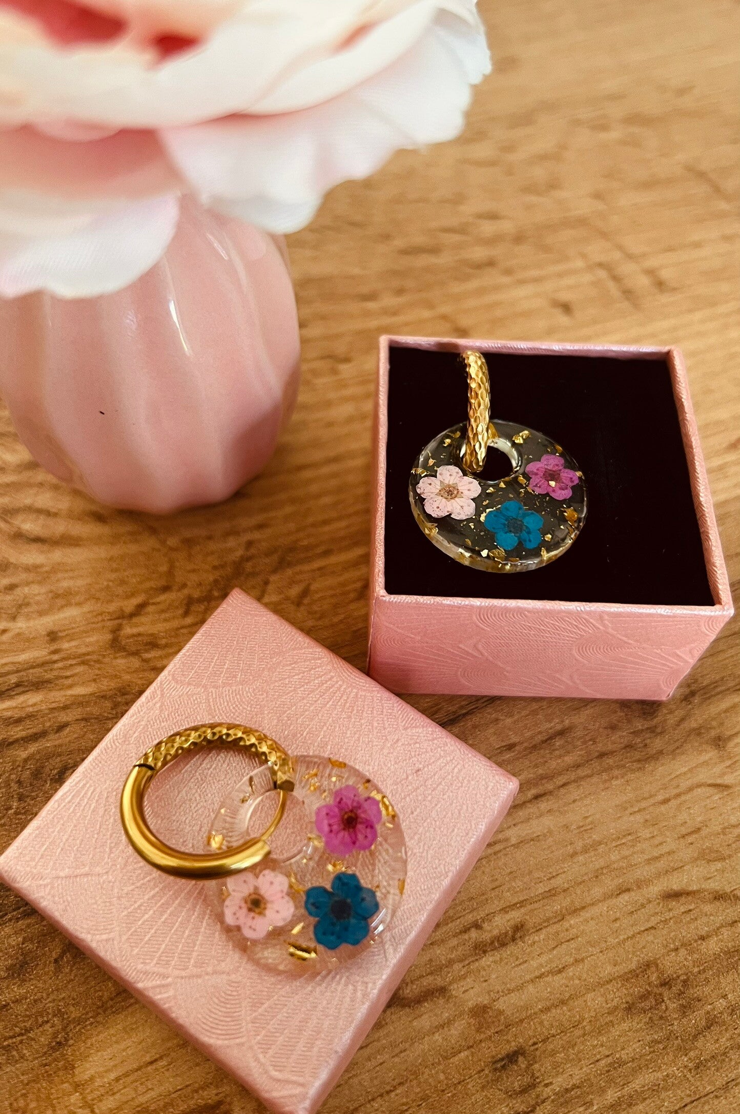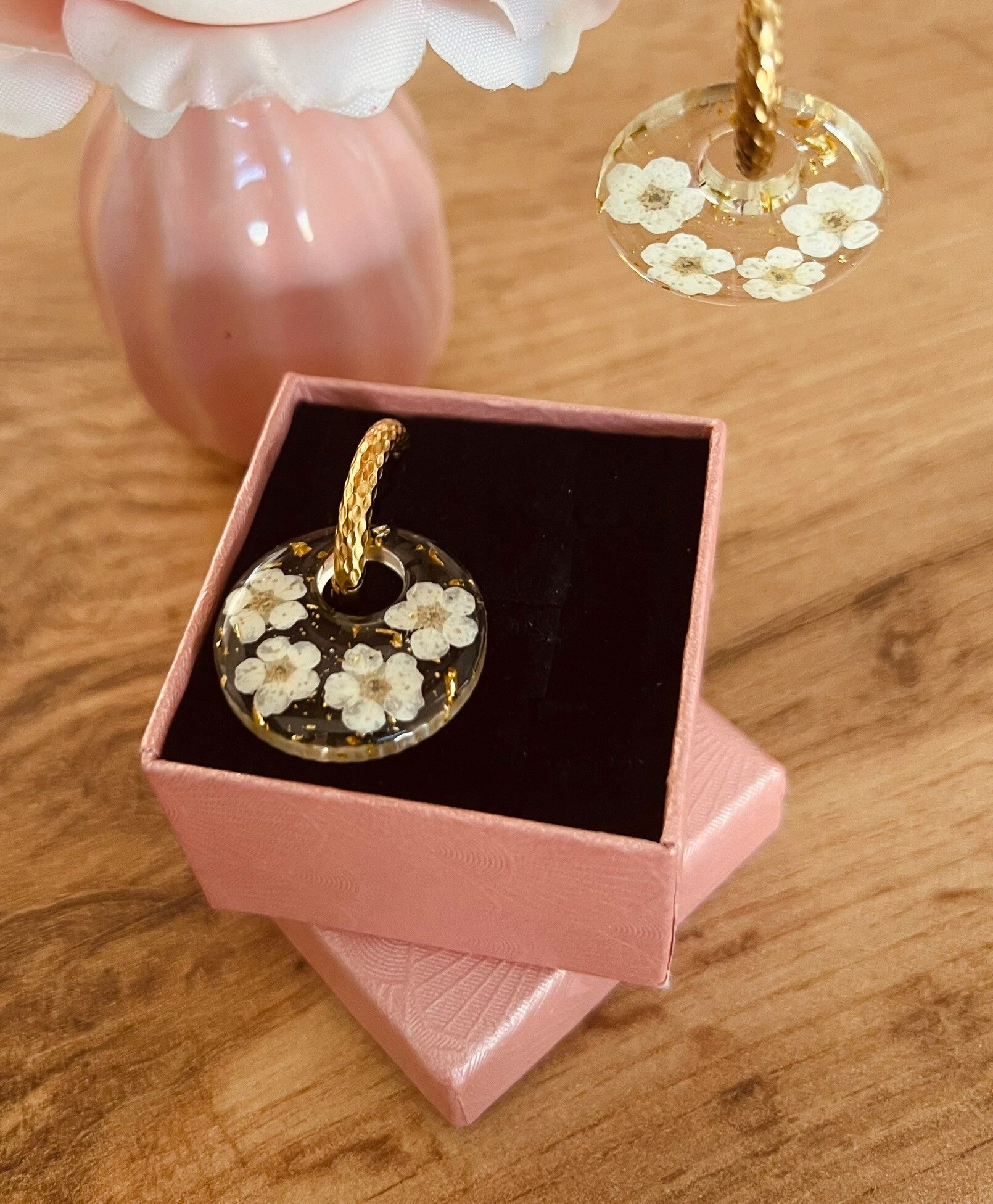 Cet article est fait main en résine époxy. Chaque pampilles est unique, ce qui rend chaque création spéciale.